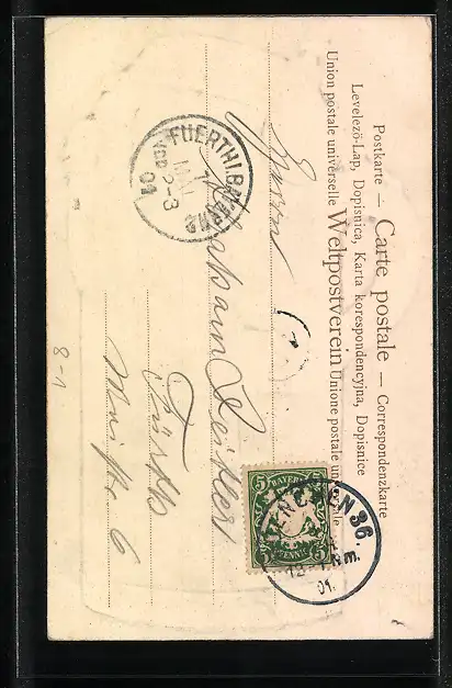 alte Ansichtskarte, gelaufen 1901, guter Zustand