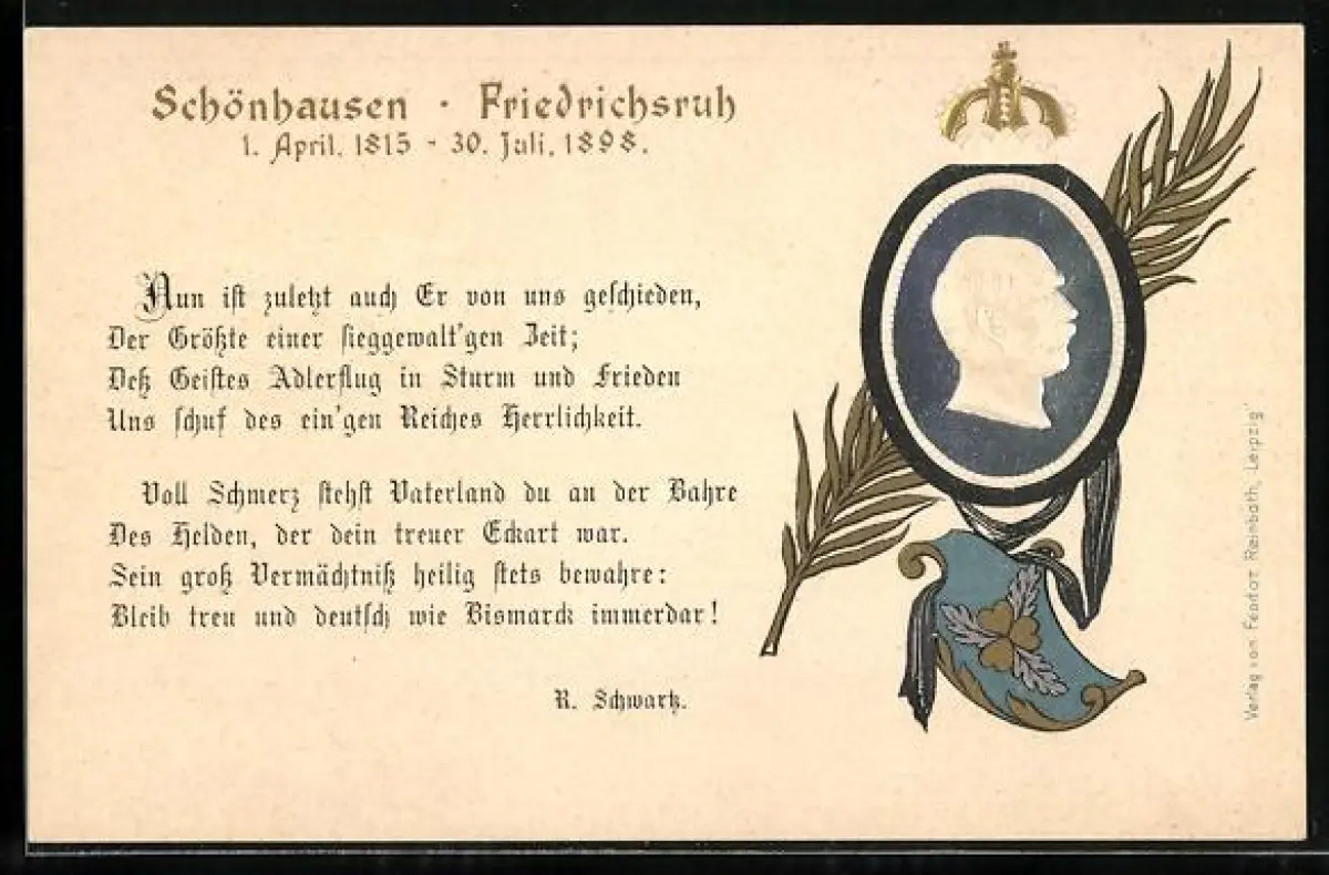 Präge-AK Bismarck im Profil, Karte zum Tode Bismarcks 1898