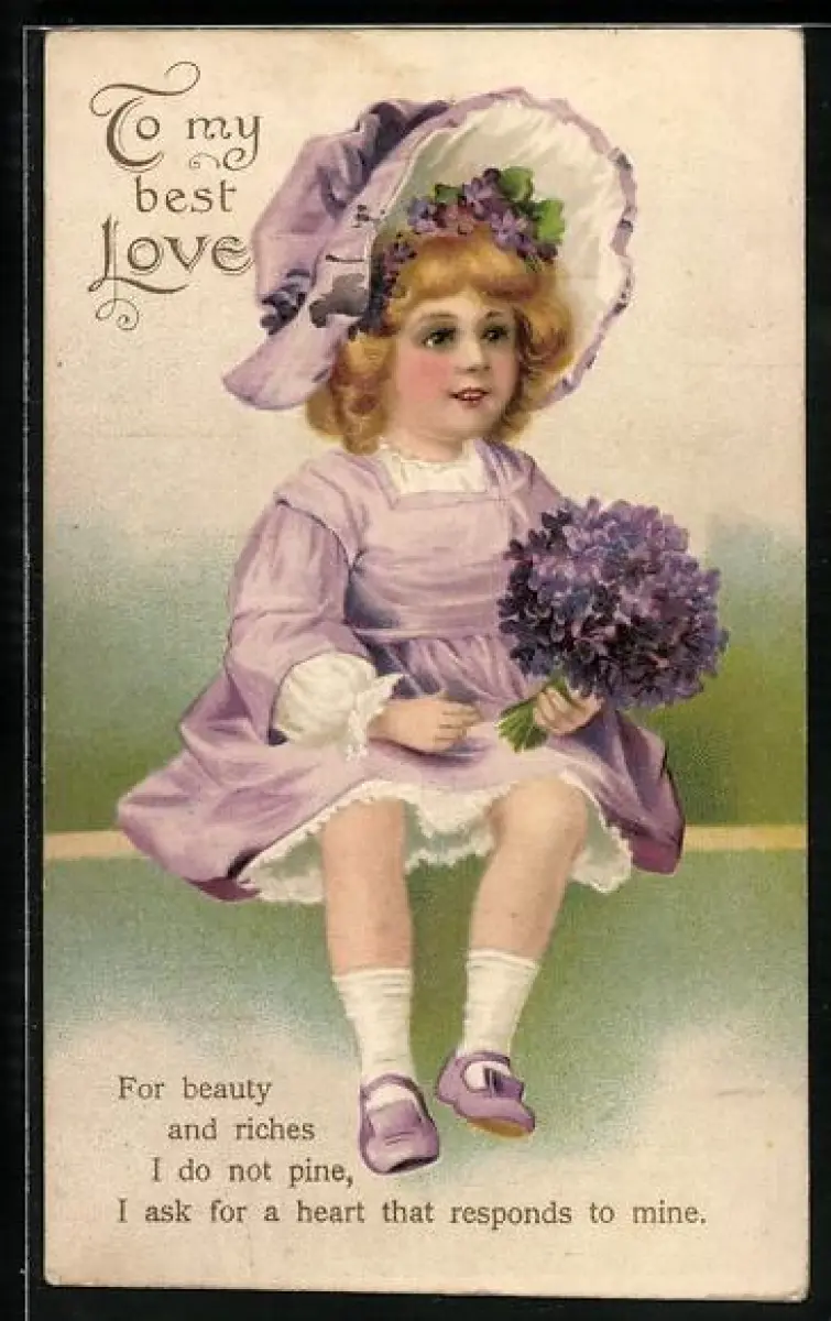 Präge-AK Blondes Mädchen mit einem Veilchenstrauss