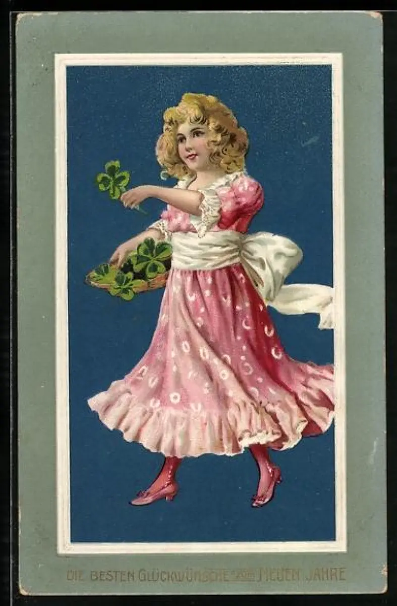 Präge-AK Blondes Mädchen überbringt Klee und Neujahrswünsche