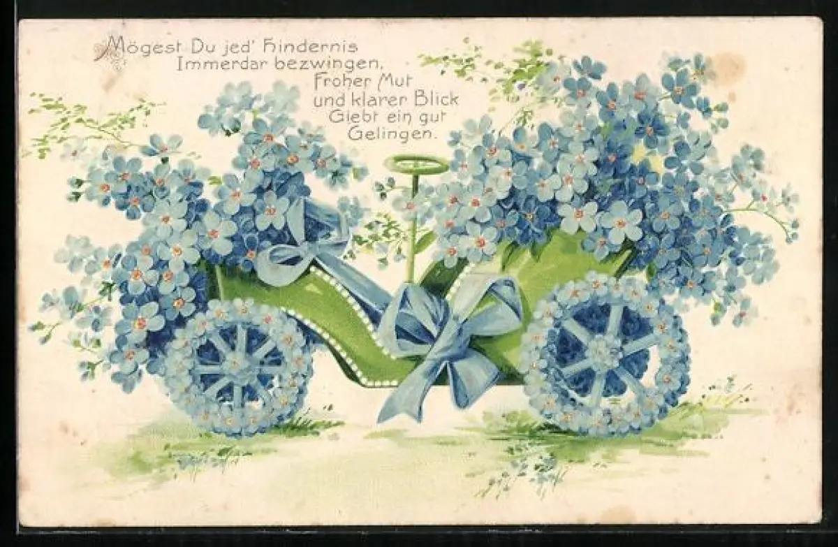 Präge-AK Blumenauto aus Vergissmeinnicht, Mögest du jed` Hindernis Immerdar bezwingen...
