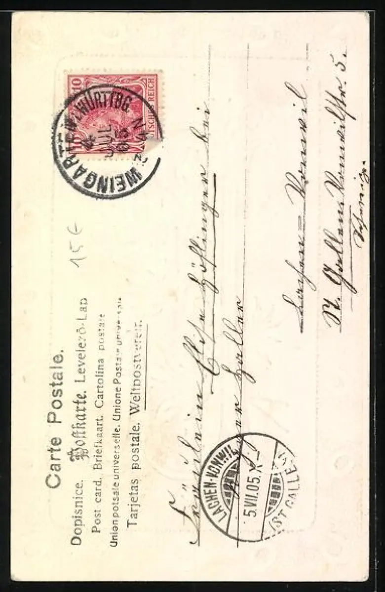 alte Ansichtskarte, gelaufen 1905, Briefmarke entfernt, guter Zustand