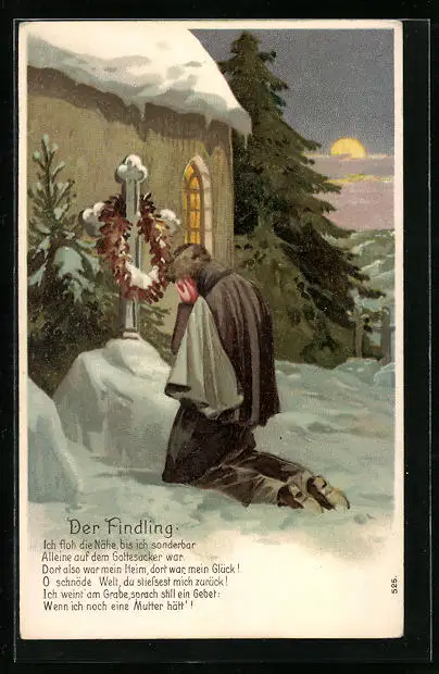 Präge-AK Der Findling, Mann trauert um Mutter am Grab