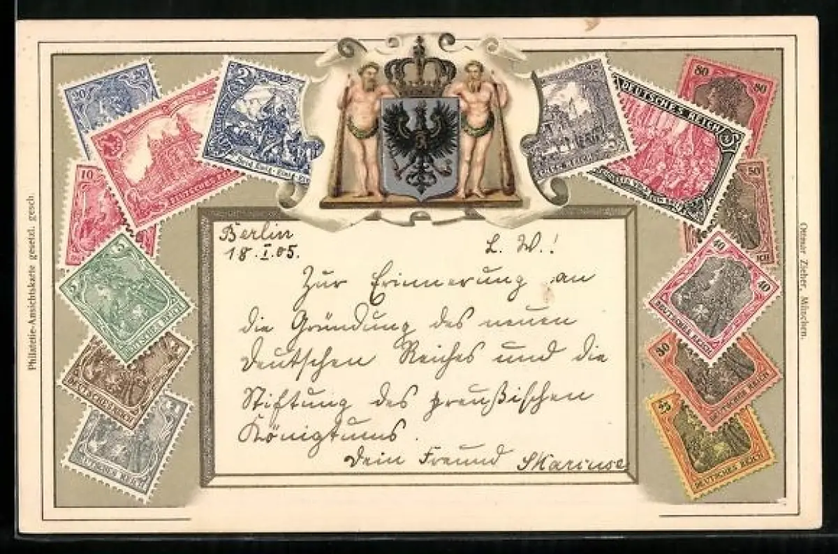 Präge-AK Deutsche Briefmarken mit Wappen