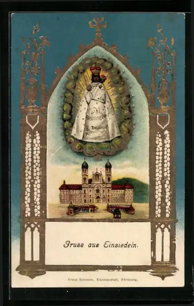 Präge-AK Einsiedeln, Kirche und Gnadenmutter