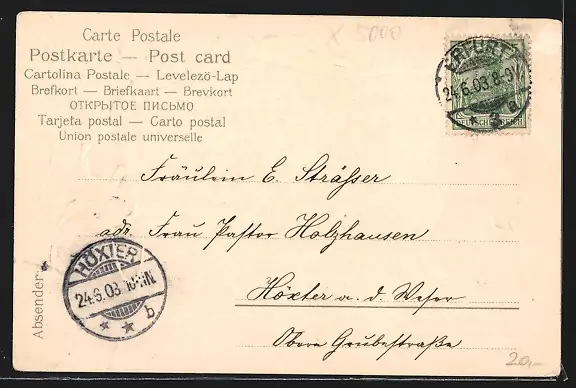 alte Ansichtskarte, gelaufen 1903, rückseitig Oberflächenschaden, guter Zustand