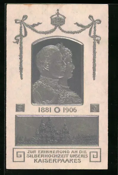 Präge-AK Erinnerung an die Silberhochzeit des Kaiserpaares am 27.02.1906