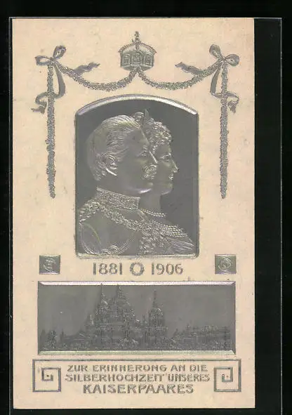 Präge-AK Erinnerung an die Silberhochzeit des Kaiserpaares am 27.02.1906, Kaiserin Auguste Victoria Königin von Preussen