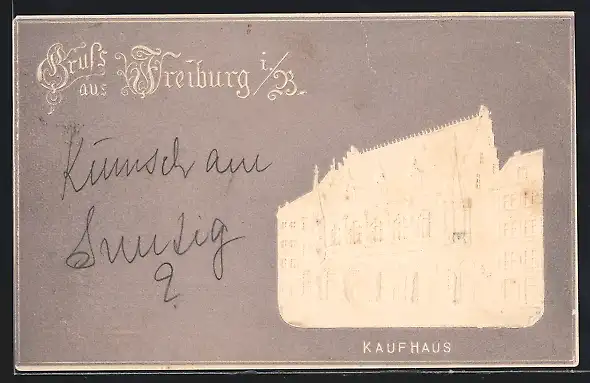 Präge-AK Freiburg i. B., Ansicht des Kaufhauses
