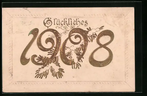 Präge-AK Glückliches Neujahr 1908 mit Tannenzweig