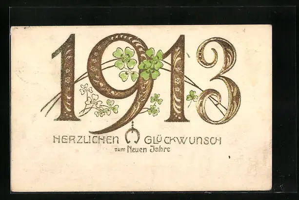 Präge-AK Glückwunsch zum Neujahr 1913 mit Kleeblatt