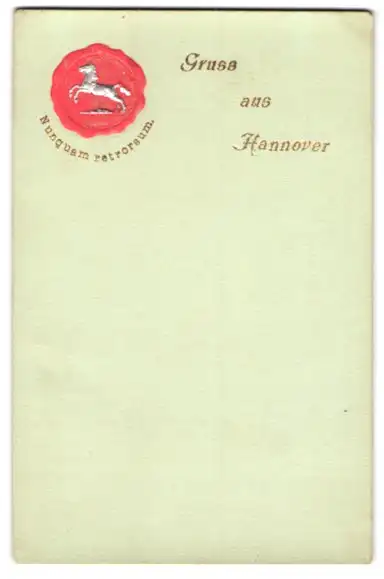 Präge-AK Hannover, Rotes Siegel mit Pferd, Nunquam petrorsum