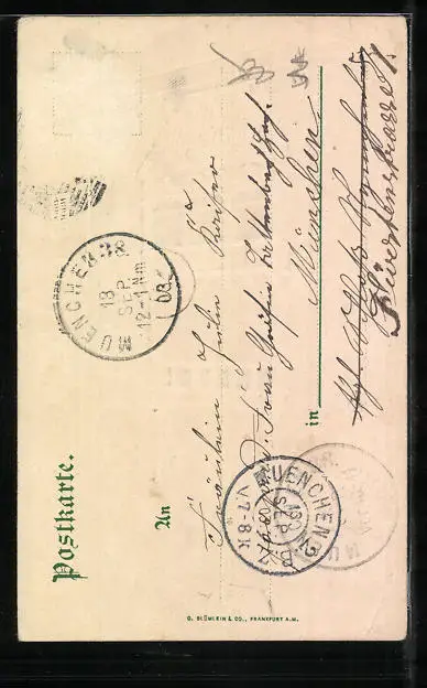 alte Ansichtskarte, gelaufen 1903, Briefmarke entfernt, Eckknick unten li., guter Zustand