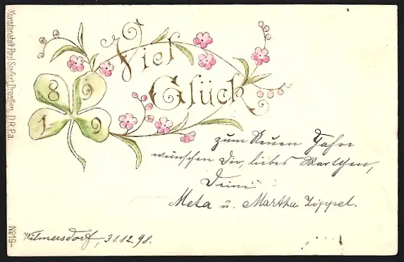 Präge-AK Jahreszahl 1899 auf Kleeblatt, Glückwunsch