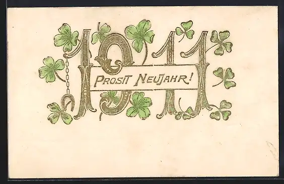 Präge-AK Jahreszahl 1911 gerahmt von Kleeblättern, Prosit Neujahr