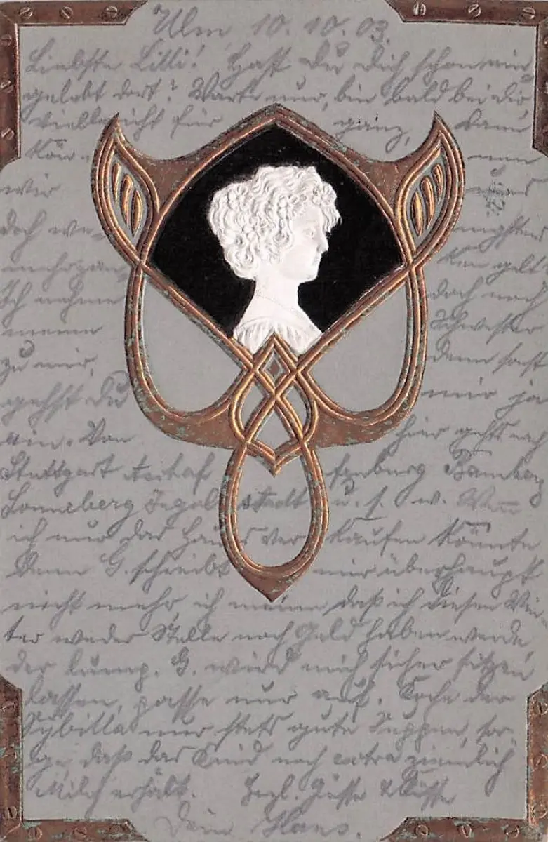 Präge-AK Junge Frau mit Kopfschmuck, Jugendstil -792616