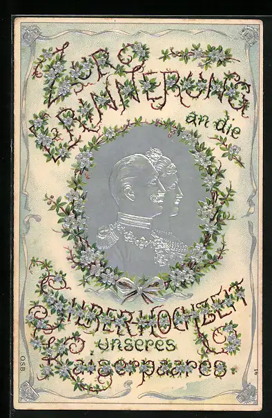 Präge-AK Kaiser Wilhelm II. mit seiner Frau im Portrait, Zur Erinnerung an die Silberhochzeit