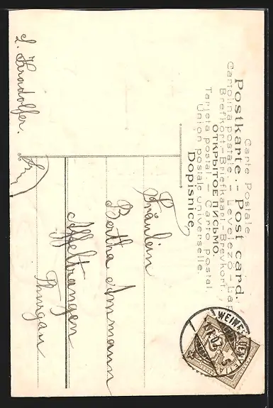 alte Ansichtskarte, gelaufen 1907, obere Kante beschnitten, guter Zustand