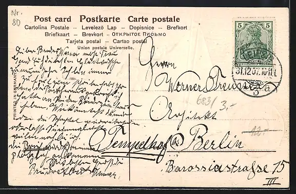 alte Ansichtskarte, gelaufen 1907, guter Zustand