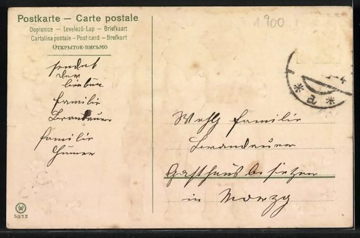 alte Ansichtskarte, gelaufen, Briefmarke entfernt, guter Zustand