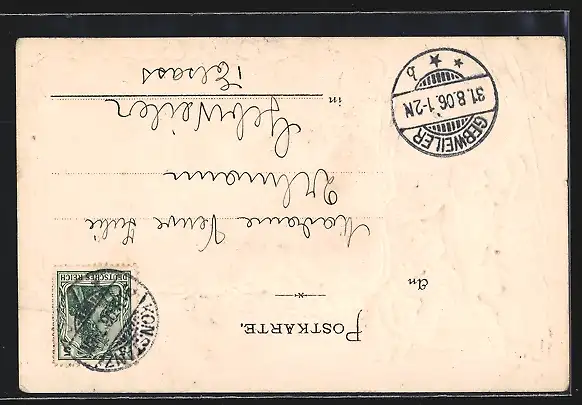 alte Ansichtskarte, gelaufen 1906, Eckknick oben re., guter Zustand