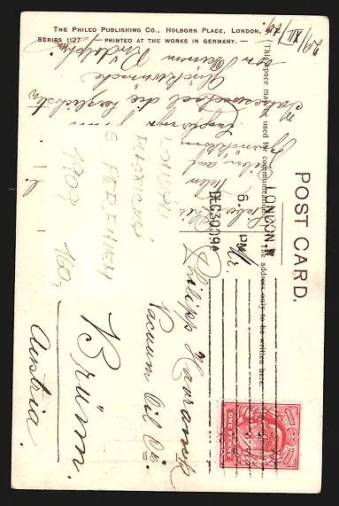 gelaufen 1909, rückseitig Klebe- und Papierreste, Ecken bestoßen, guter Zustand