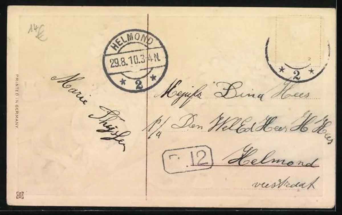 gelaufen 1910, Briefmarke entfernt, guter Zustand