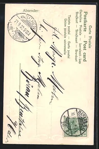 alte Ansichtskarte, gelaufen 1902, guter Zustand