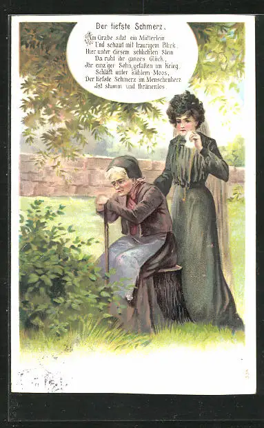 Präge-AK Mutter trauert am Grab des gefallenen Sohnes, Gedicht Der tiefste Schmerz, Tod