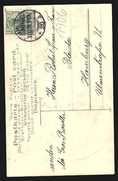alte Ansichtskarte, gelaufen 1906, Stempelspur, guter Zustand