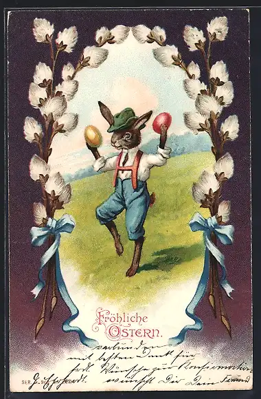 Präge-AK Osterhase in Tracht mit Ostereiern