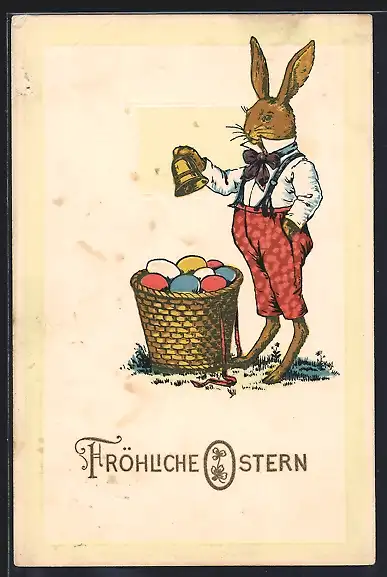 Präge-AK Osterhase läutet eine Glocke