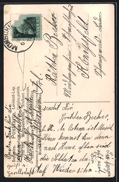 alte Ansichtskarte, gelaufen 1913, Eckknick re. unten, guter Zustand