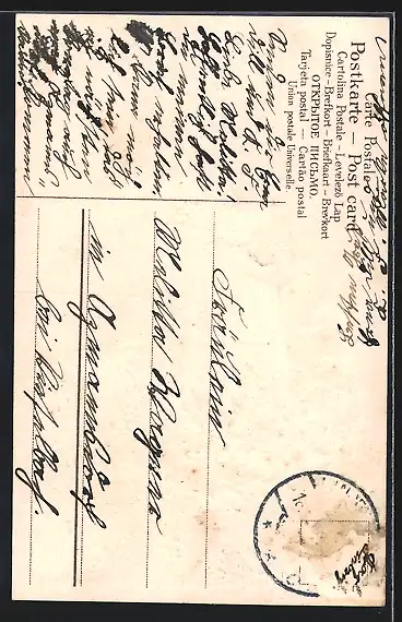 alte Ansichtskarte, gelaufen, Briefmarke entfernt, rückseitig Oberflächenschaden, guter Zustand