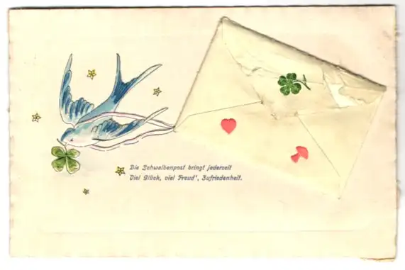 Präge-AK Schwalbenpost bringt ein Briefchen