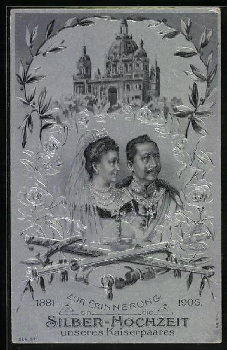 Präge-AK Silberhochzeit des Kaiserpaares 1906, Das Kaiserpaar im Porträt