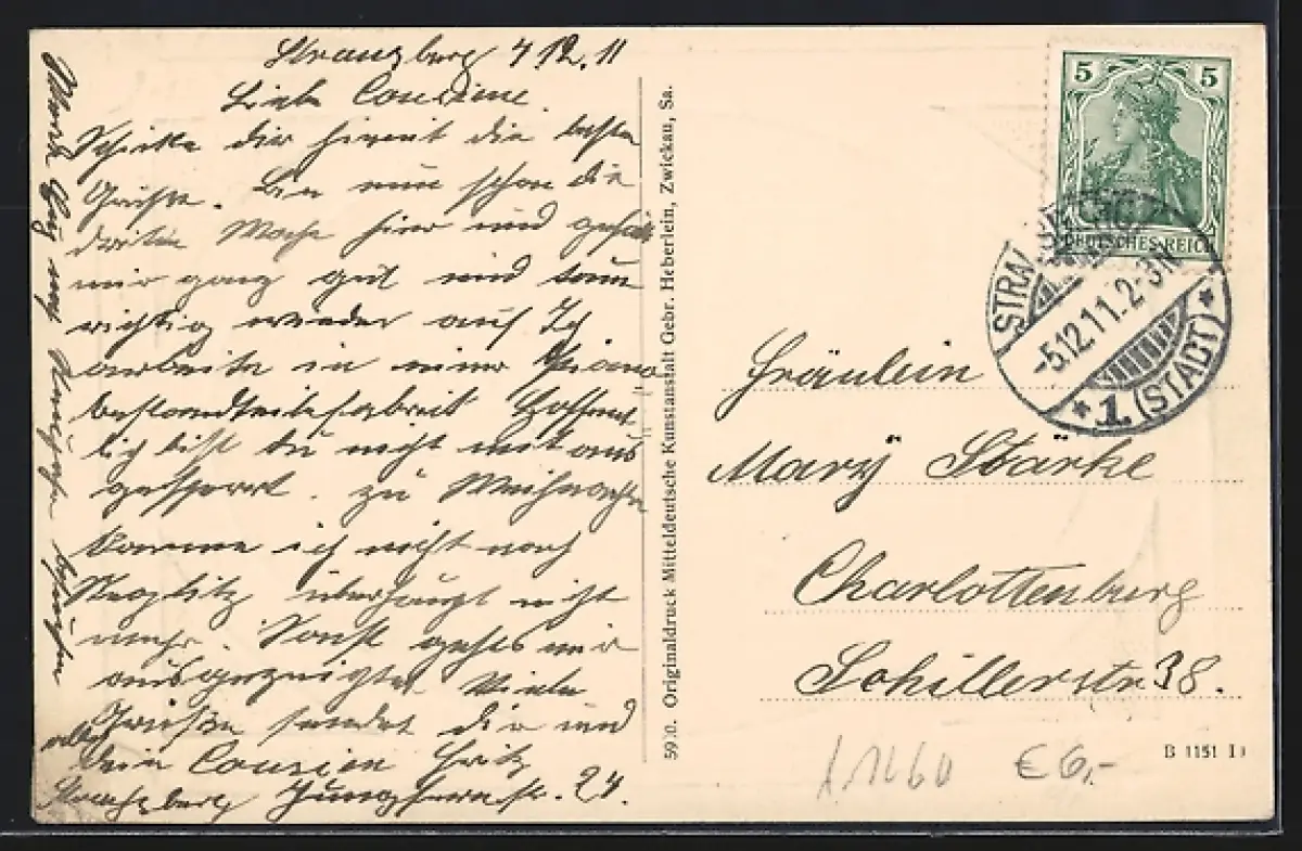 alte Ansichtskarte, gelaufen 1911, Abriebspur u. Eckknick unten re., guter Zustand