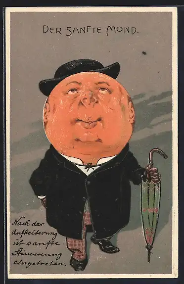 Präge-AK Vermenschlichter Mond mit Gesicht im Anzug
