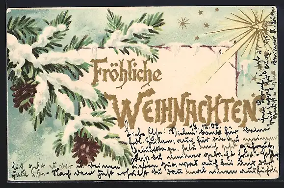 Präge-AK Weihnachtsgruss mit verschneitem Tannenzweig