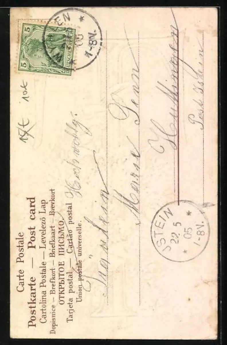 alte Ansichtskarte, gelaufen 1905, Eckknicke re. oben, guter Zustand