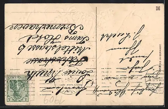 alte Ansichtskarte, gelaufen 1909, Stempelspur, guter Zustand
