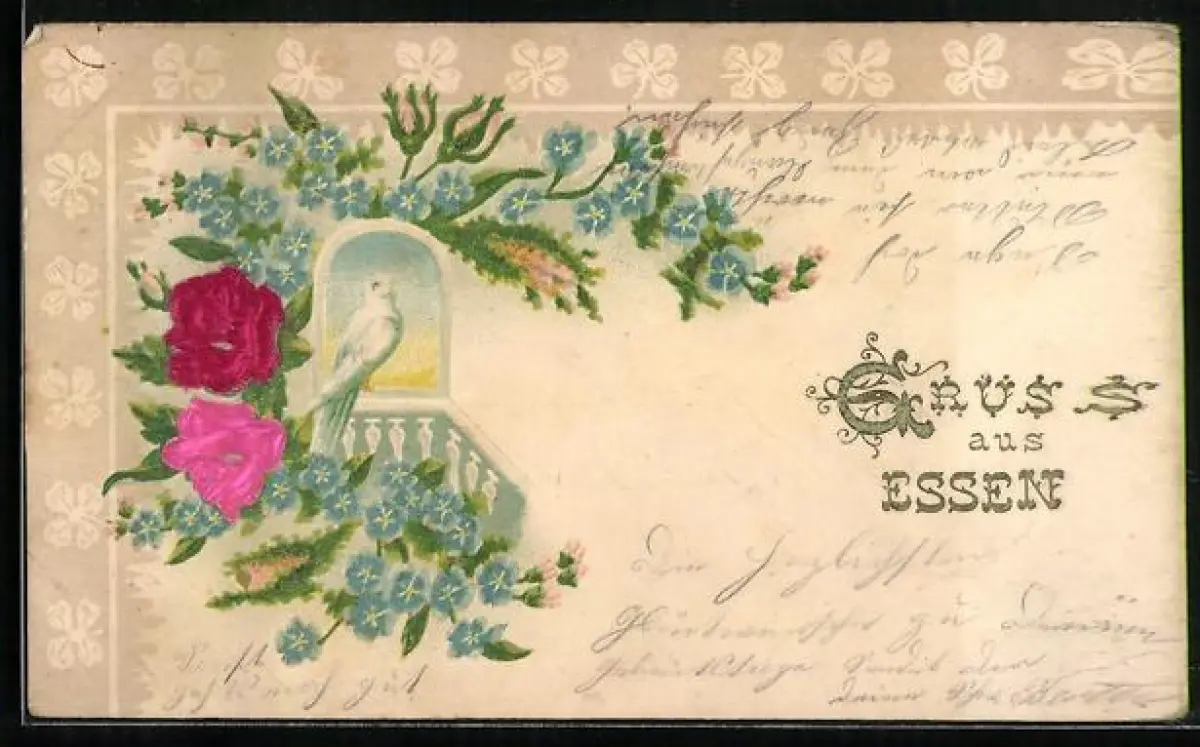 Präge-Lithographie Essen / Ruhr, Taube und Vergissmeinnicht
