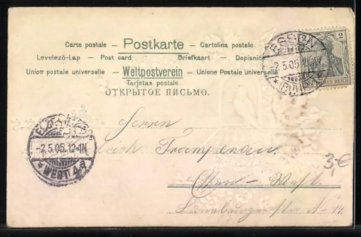 gelaufen 1905, Eckknick unten rechts, guter Zustand