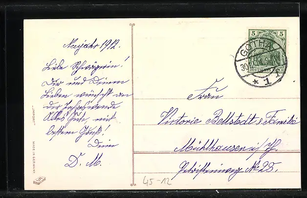 Präge-Lithographie Kinder auf Rodelschlitten, Ort im Schnee, Neujahrsgruss