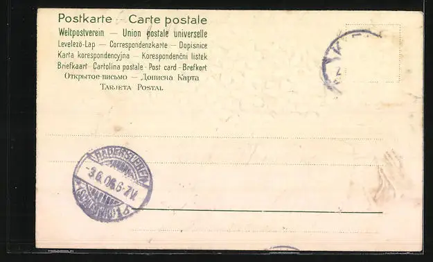 gelaufen 1906, Briefmarke entfernt, guter Zustand