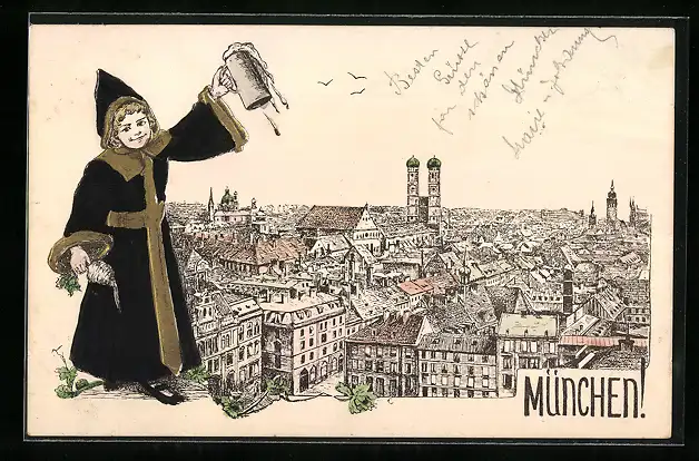 Präge-Lithographie München, Münchner Kindl prostet der Stadt zu