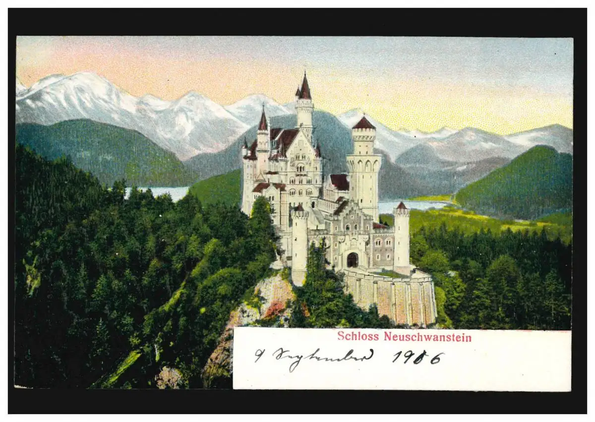 Prägekarte Schloss Neuschwanstein, handschr. 9. September 1906, ungebraucht