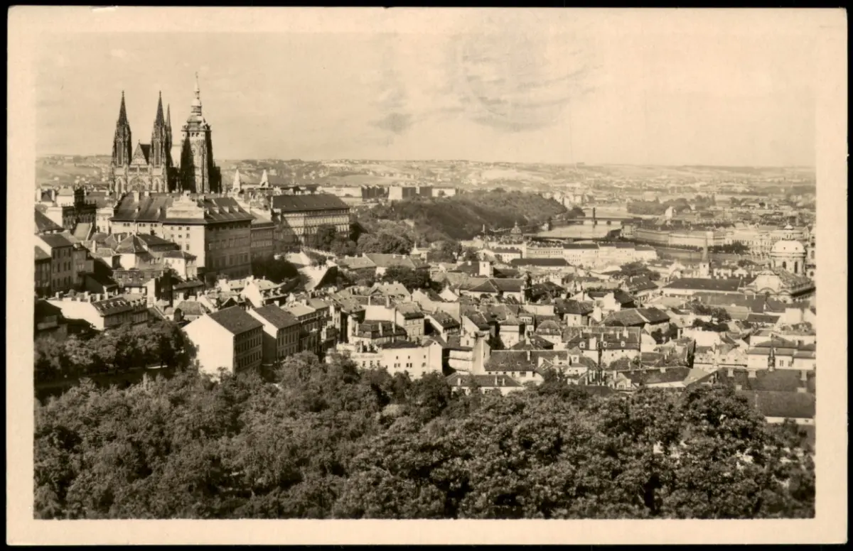 Prag Praha Panorama-Ansicht Blick zur Burg Hradčany Castle 1948