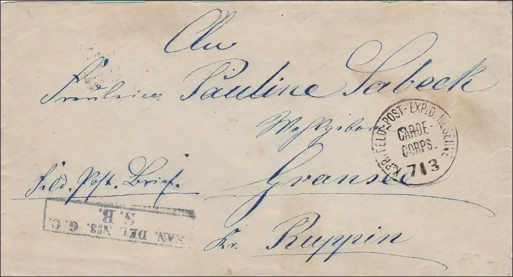 Preussen: Feldpost Brief Garde Corps nach Ruppin, seltener Stempel