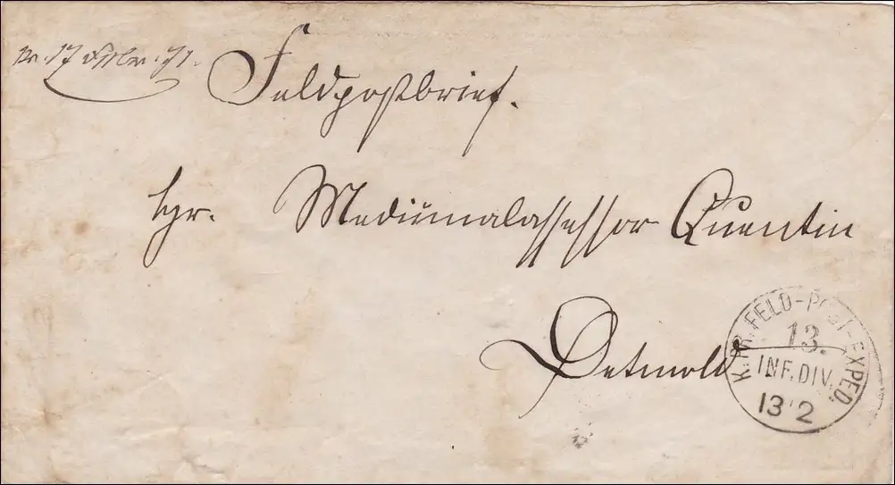 Preussen: Feldpost Brief : K. PR. Infanterie Division nach Detmold1871